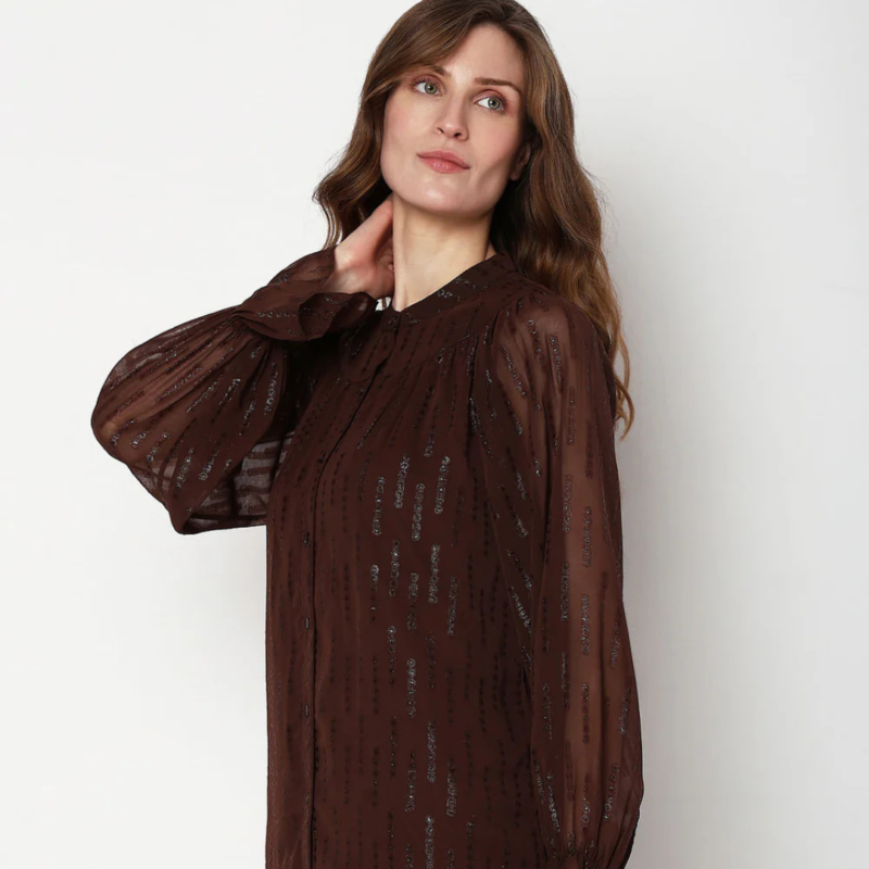 Dark Brown Lurex Sheer Sleeves Top