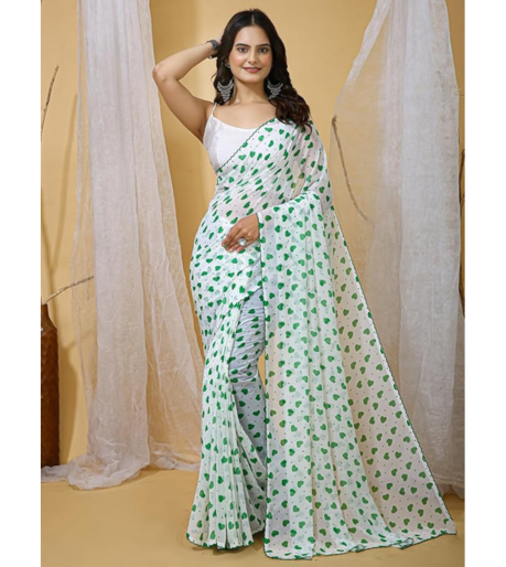 leelavati Printed Bandhani Georgette Saree With Unstitched Blouse piece (Green) (VS-GR-1576)