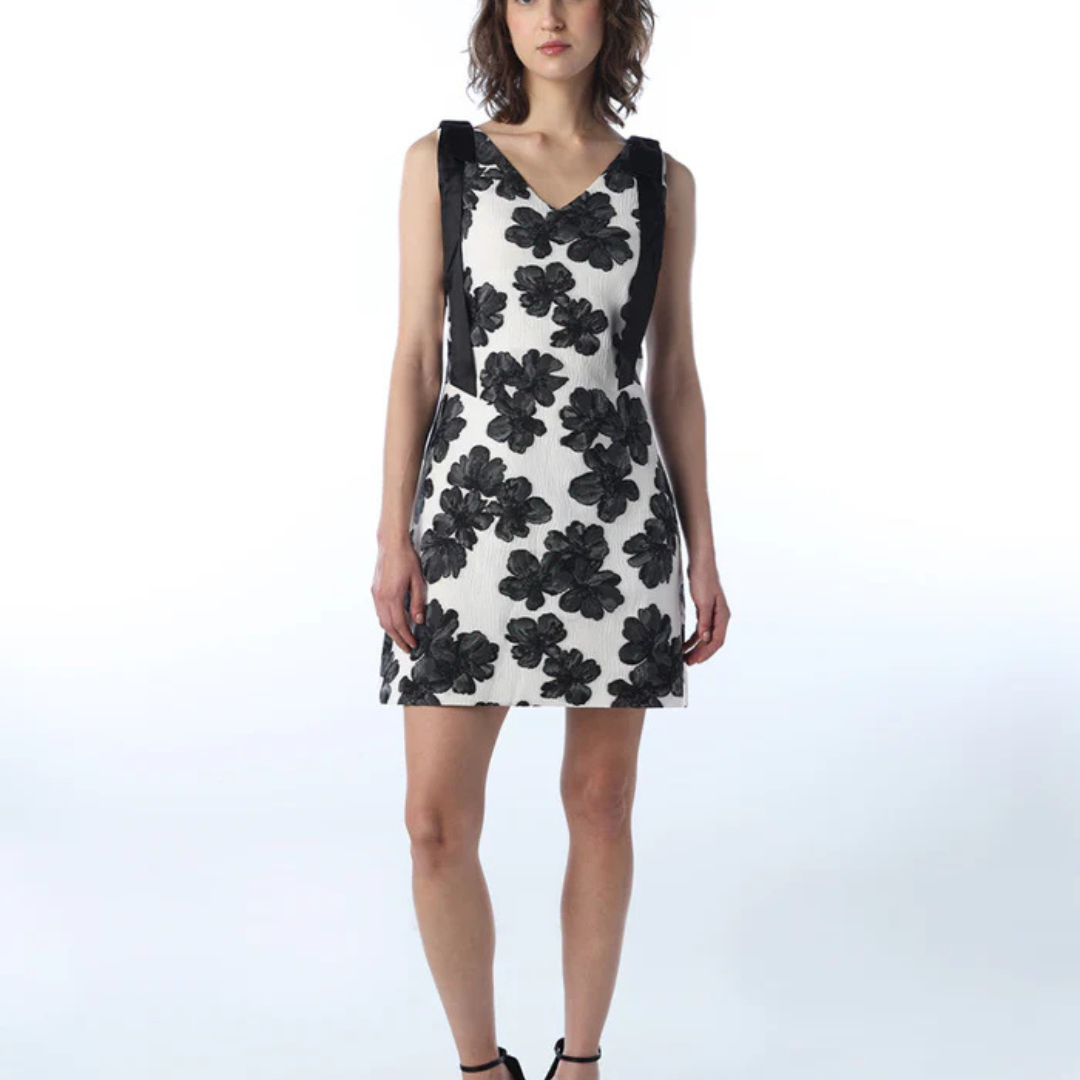Stylish floral textured short dress with modern appeal. Perfect for chic and casual styling.