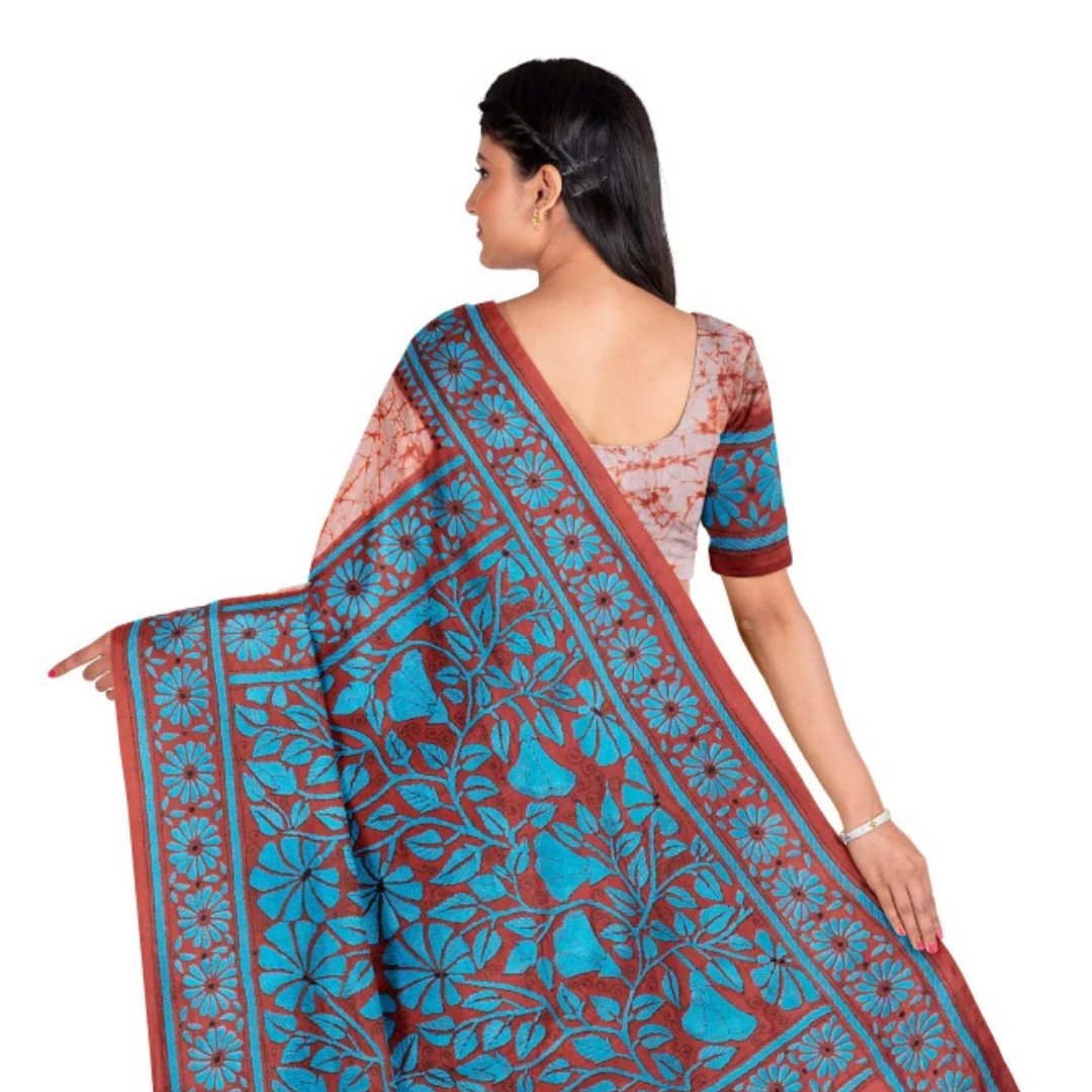 This vibrant saree is a celebration of the traditional Bengali Kantha stitch, where artisans create beautiful patterns using a simple running stitch. On a base of luxurious silk, the multi-colored threads come to life, embroidering floral, figurative, or geometric motifs across the fabric. Each saree is unique, a true piece of wearable art that adds texture, color, and a rich cultural story to your wardrobe.