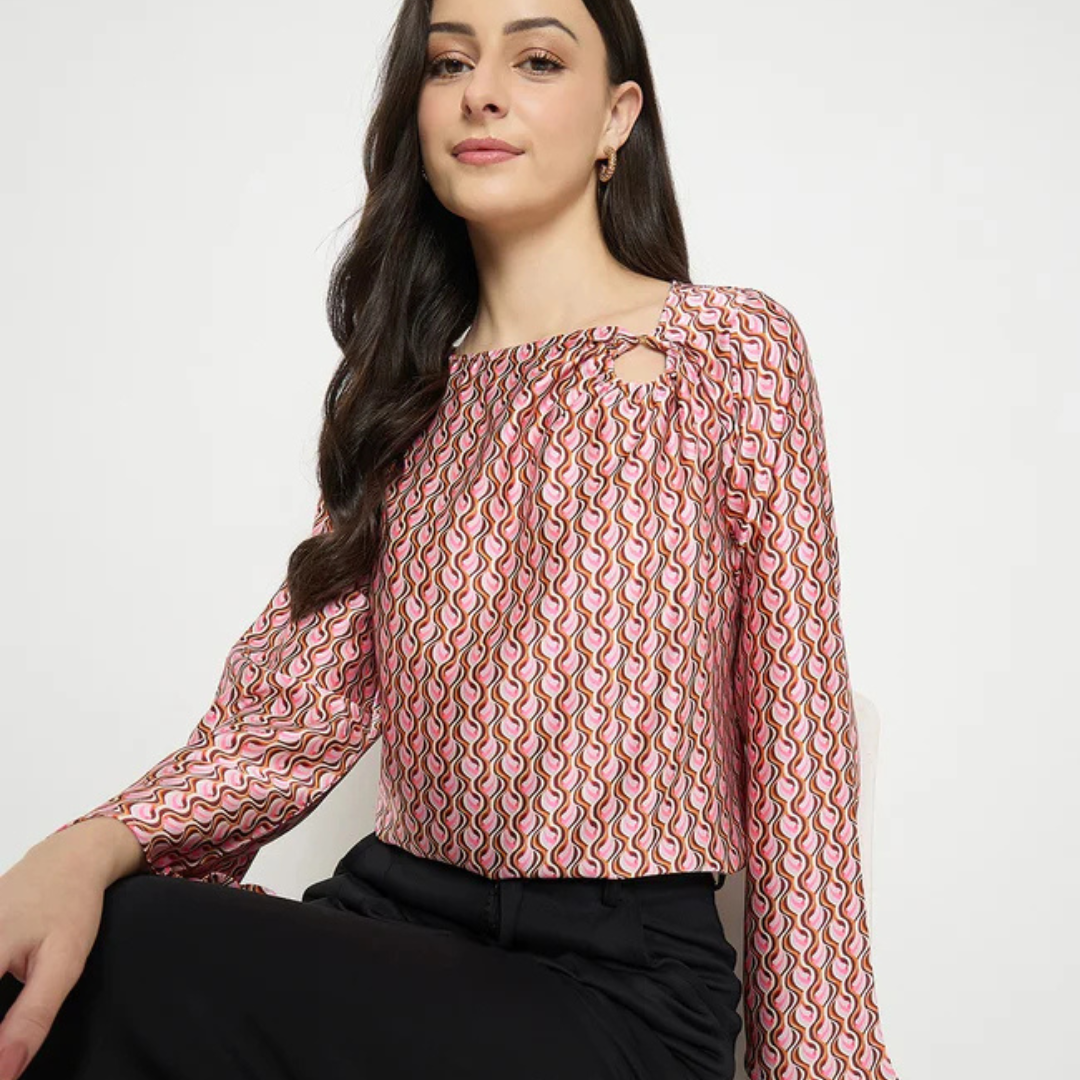 Upgrade your fashion game with this multi-color chevron print top featuring a dynamic pattern. The colorful chevron design brings a playful and modern vibe. Crafted from soft fabric for maximum comfort. Its eye-catching print makes it suitable for casual outings and day events. Lightweight and easy to style with jeans or trousers. Designed to provide a flattering and relaxed fit. A perfect choice for women who love bold and expressive fashion.