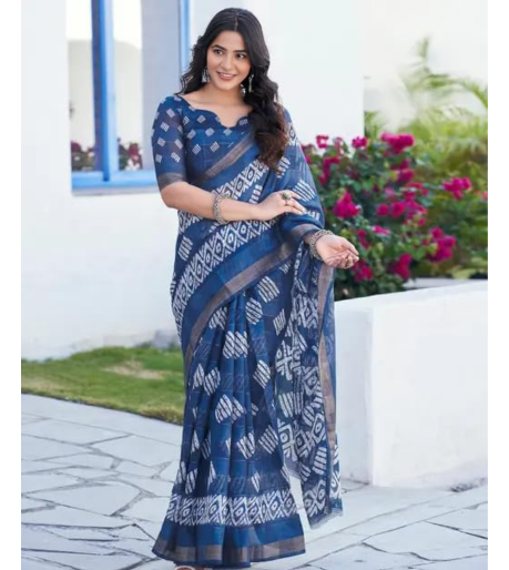 SAREEZAA Women’s Cotton Saree with Geometric Print and Unstitched Blouse Piece