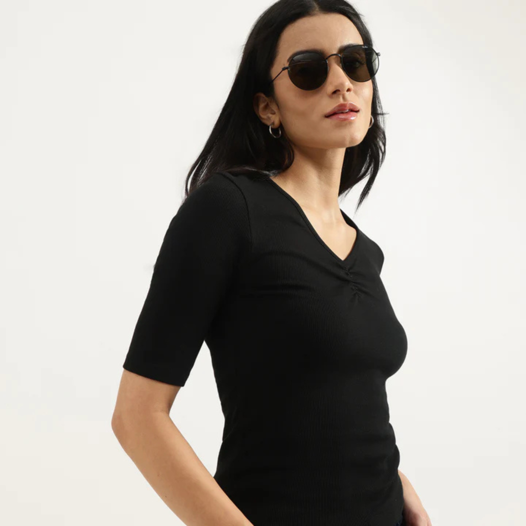 Elegant regular fit round neck solid top designed for everyday comfort. A timeless staple for every wardrobe.